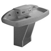Accommodates 1 - 4 users at a time, using less water, energy, and space than four lavs equipped with conventional faucets. The preassembled sprayhead module is equipped with four independent stream formers, each controlled by a separate push button or infrared sensor. Flow restrictor keeps flow rate at 0.5 GPM per station. The fixture's operating range is 20-80 PSI.